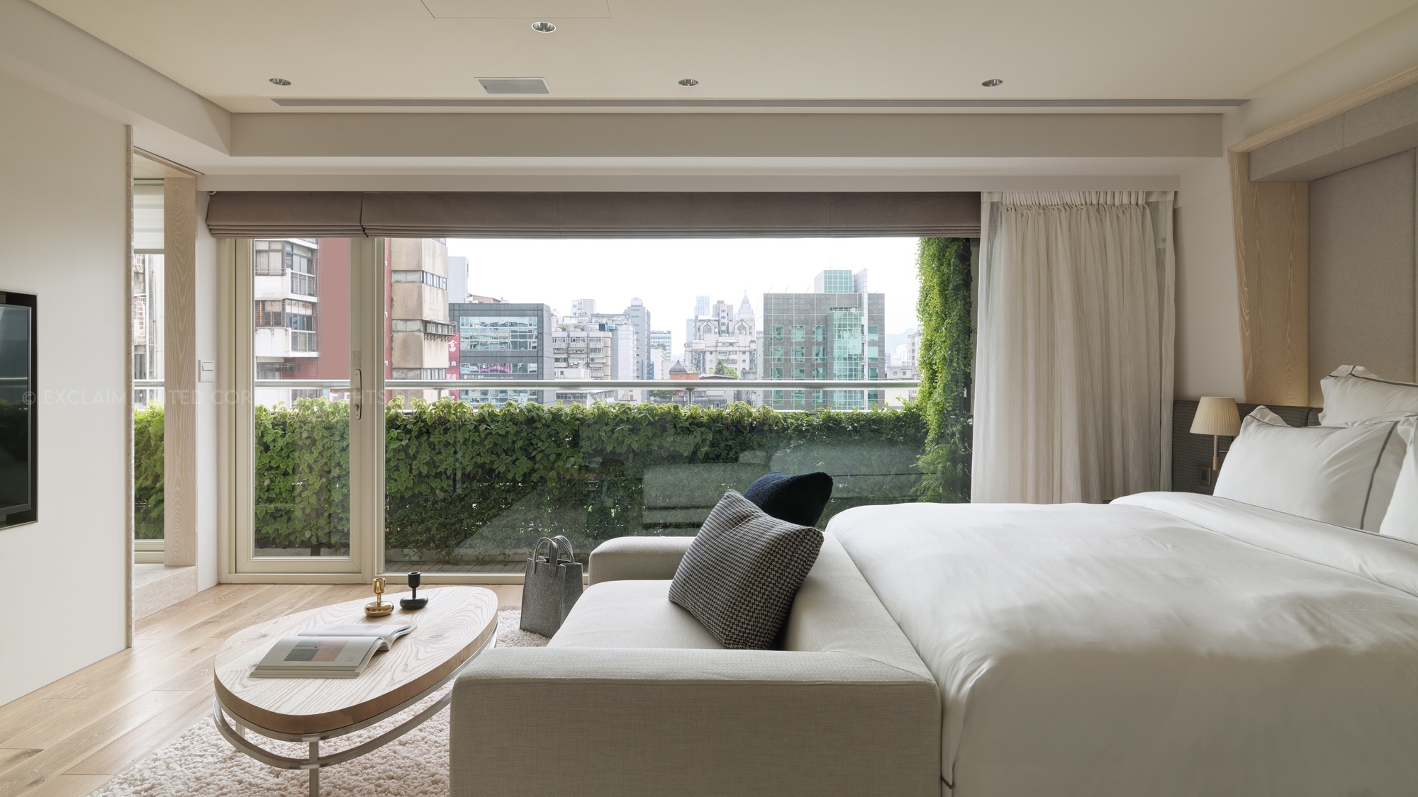 為了避開上方的退樑,再以上寬下窄的木框圍塑出邊界,凸顯張力,框架出專屬主臥的氣度與儀式感,將機能與美感同步完成。