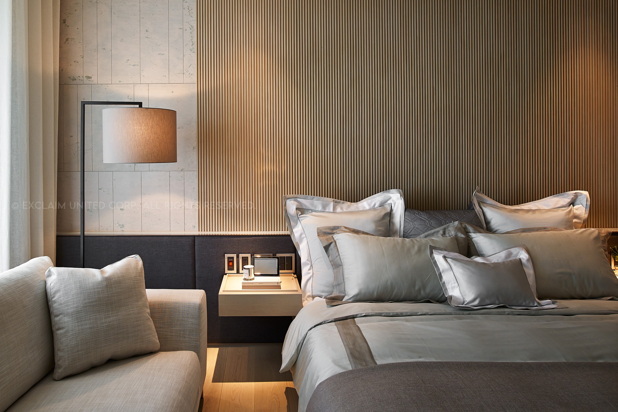 異材質的堆疊可以展現各自不同律動的空間感,臥室的牆面背板,就是極為常見的設計主體。