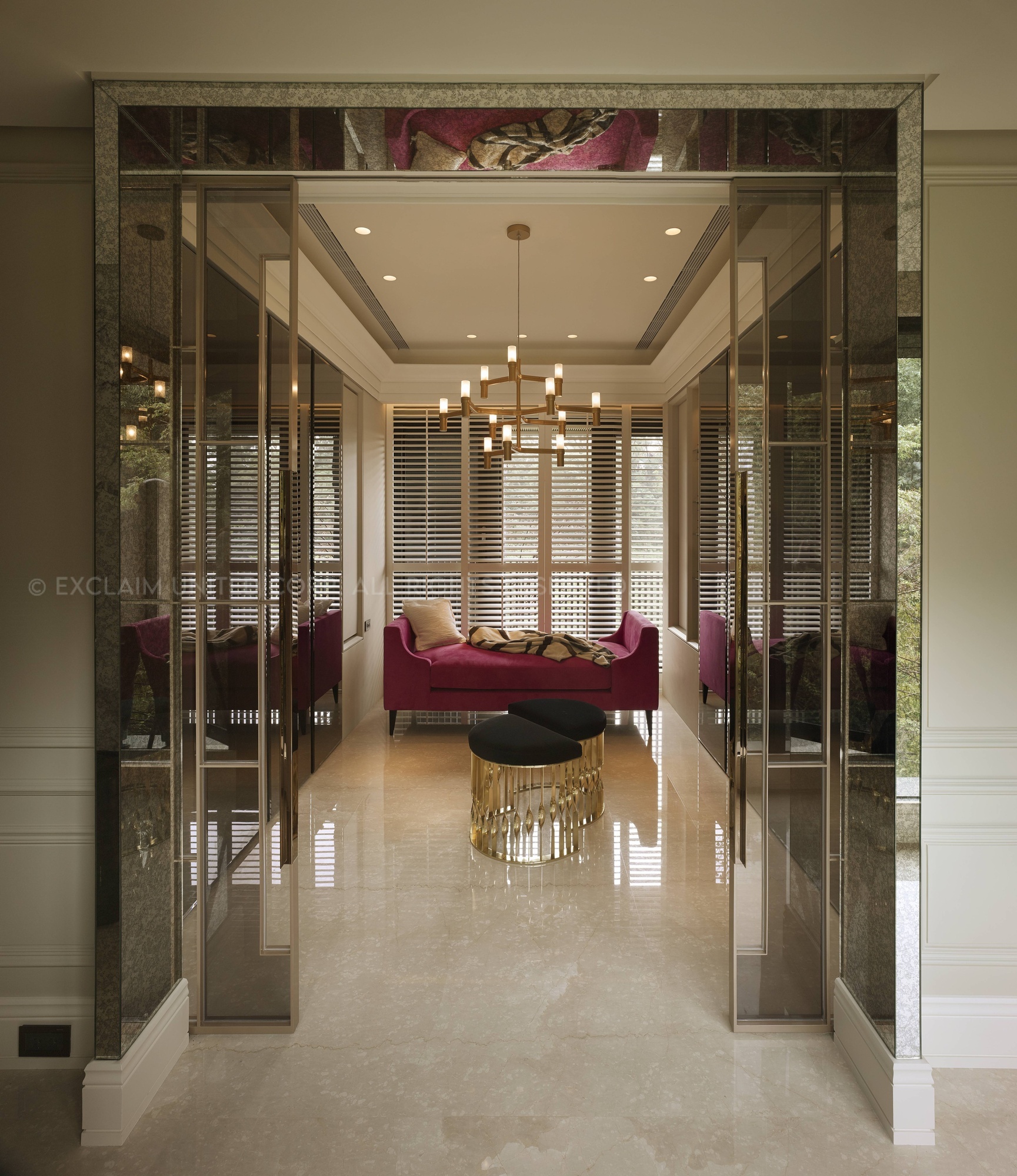 對時尚極為敏銳的屋主,家就是他的精品屋,因此設計師以金色色系為主,搭佐玻璃、鍍鈦等具穿透性及反射性的建材,以精工雕琢的細膩手法,展現亮而不閃,高雅低奢的空間氛圍,每一個角落、每一處細節的金屬嵌條收邊,都滿載設計師極致的用心思惟,滿足屋主高端內斂的生活品味。