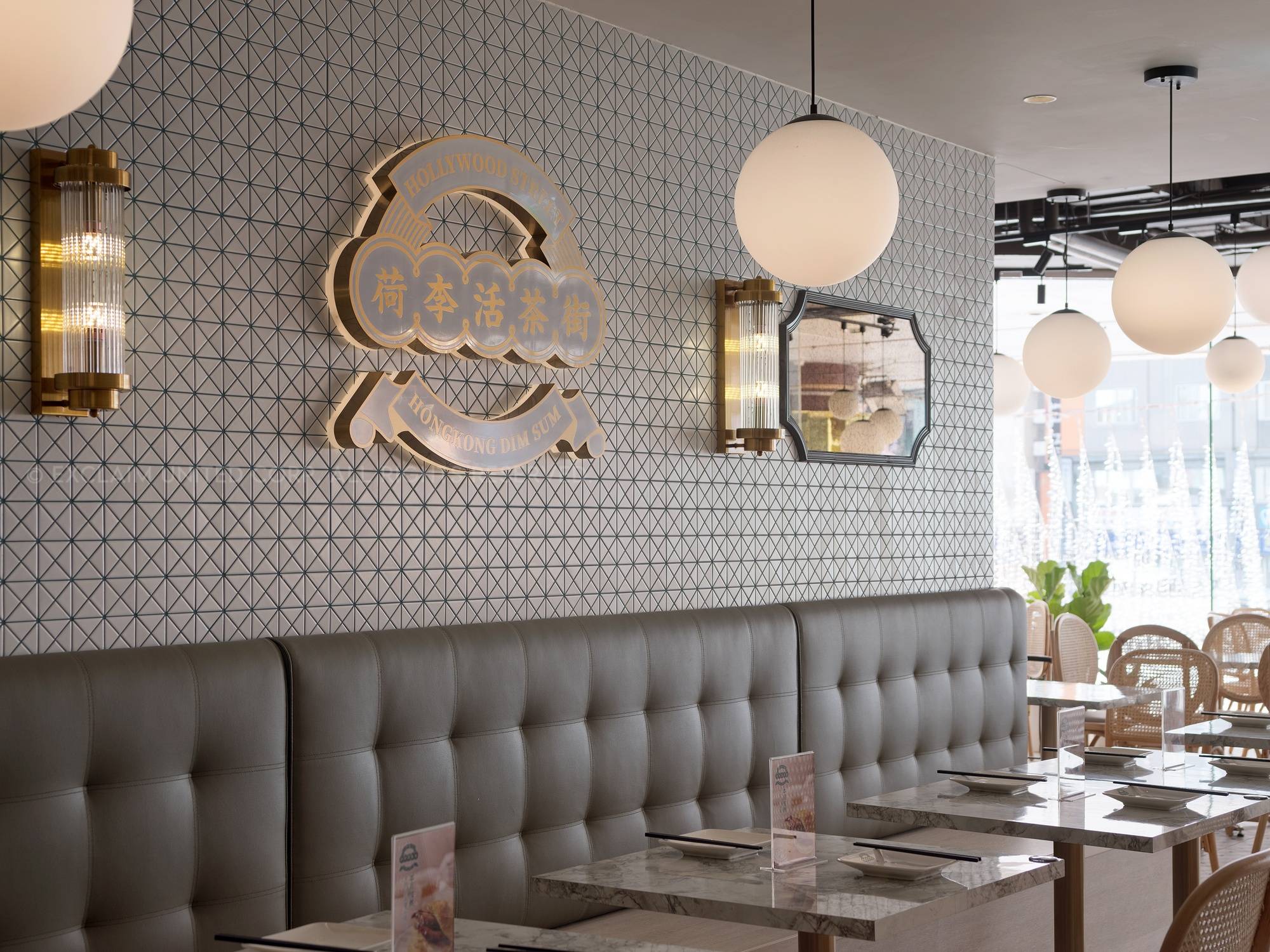 位於精華地段的「荷李活茶街Hollywood Street」以香港特有的英譯地名為靈感,讓茶餐廳除了道地的港式飲食,更展示出絕無僅有的歷史文化。整體設計以傳統港式招牌的霓虹綠為基底,演變成符合時下潮流的不飽和灰綠色調,透過各區域的材質配搭,創造出復古X摩登的時尚場域,一進入店內就彷彿穿梭至另一個時空。