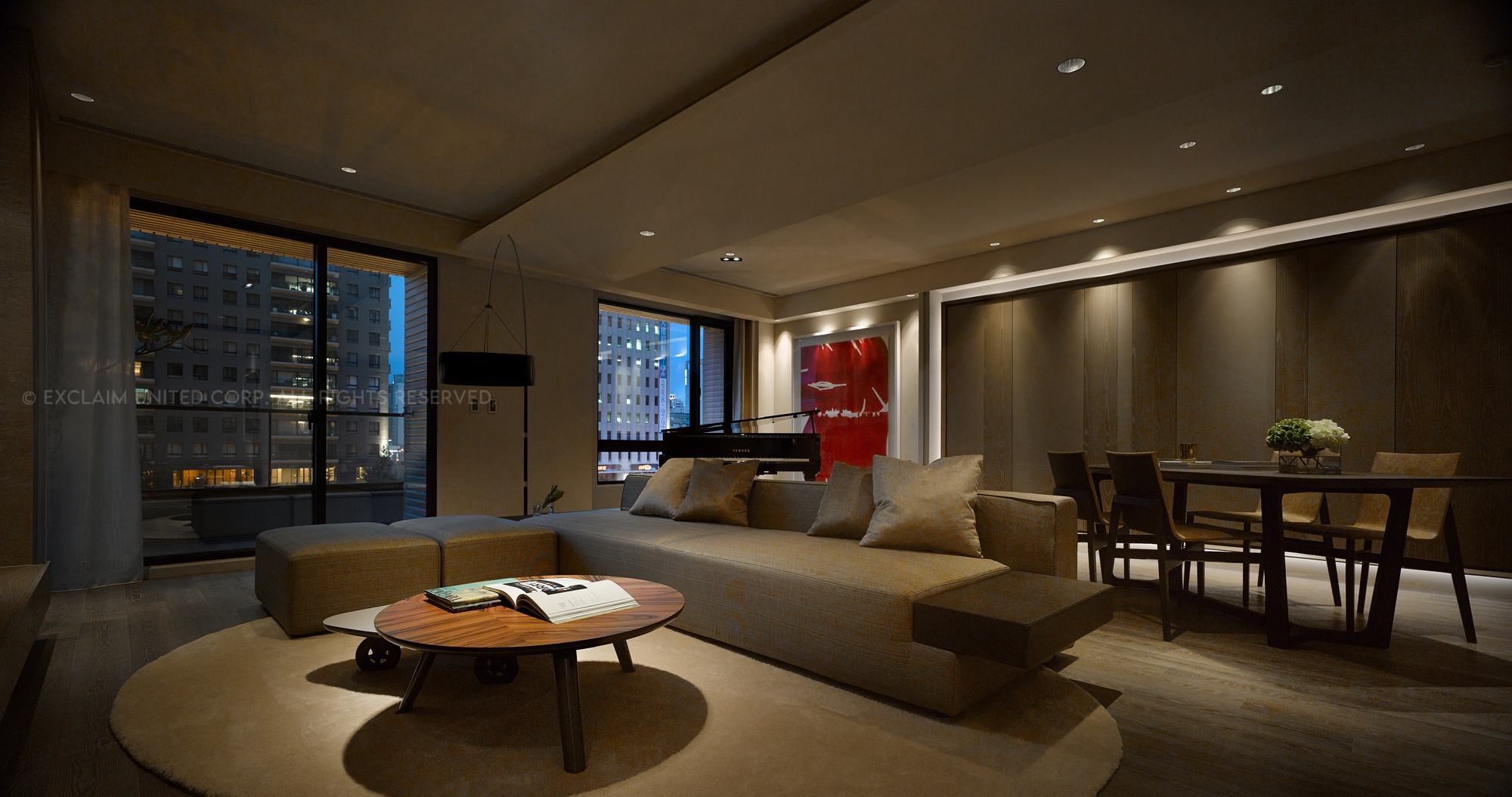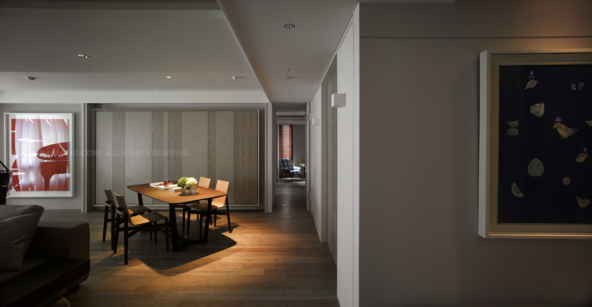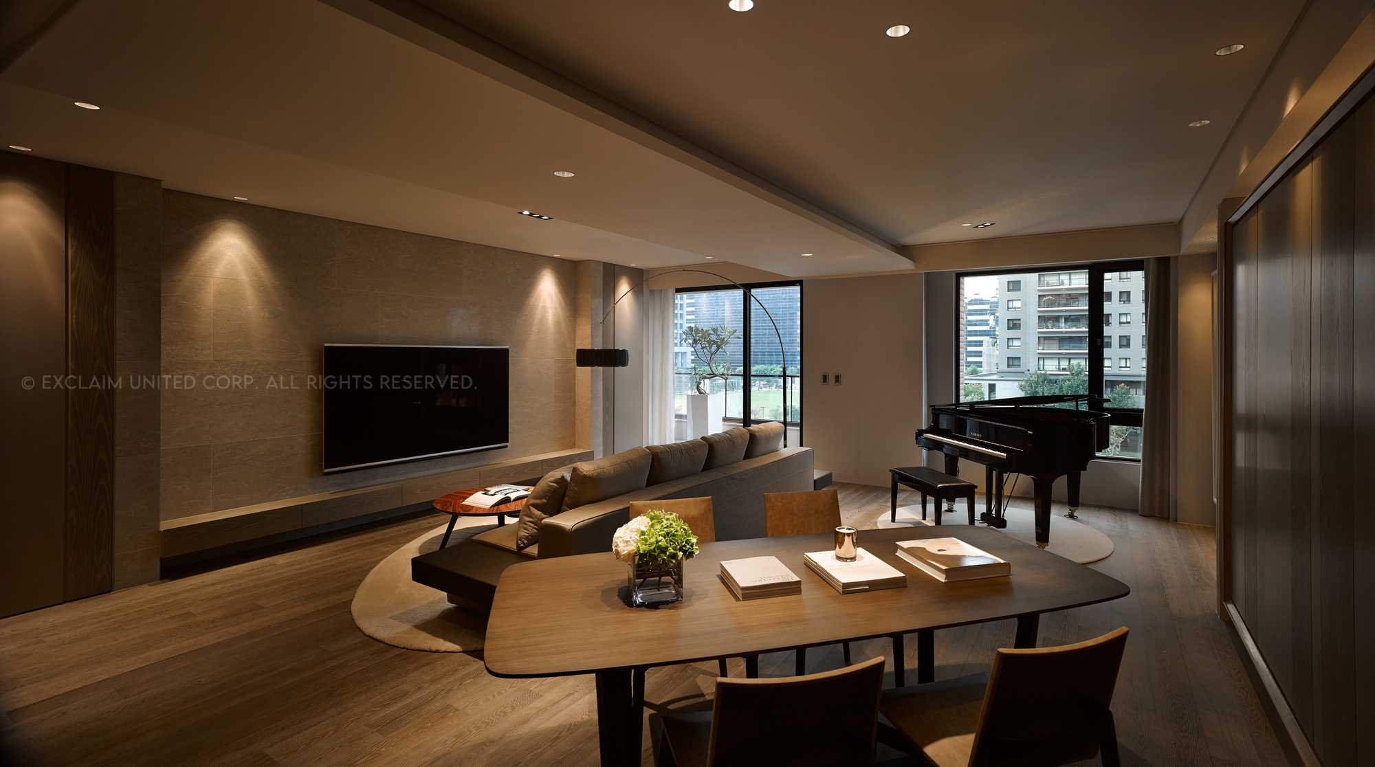 公領域的框景與開口連續而隱約的界定逐漸成形,進而引光入內,串連視覺律動,同時藉由大面開窗,將四季更迭的自然表情植入,依照結構序列分割空間屬性,由透明、條理、秩序中獲得對生活的啟發,無形中促成自然、人文及藝術的一體多面。
